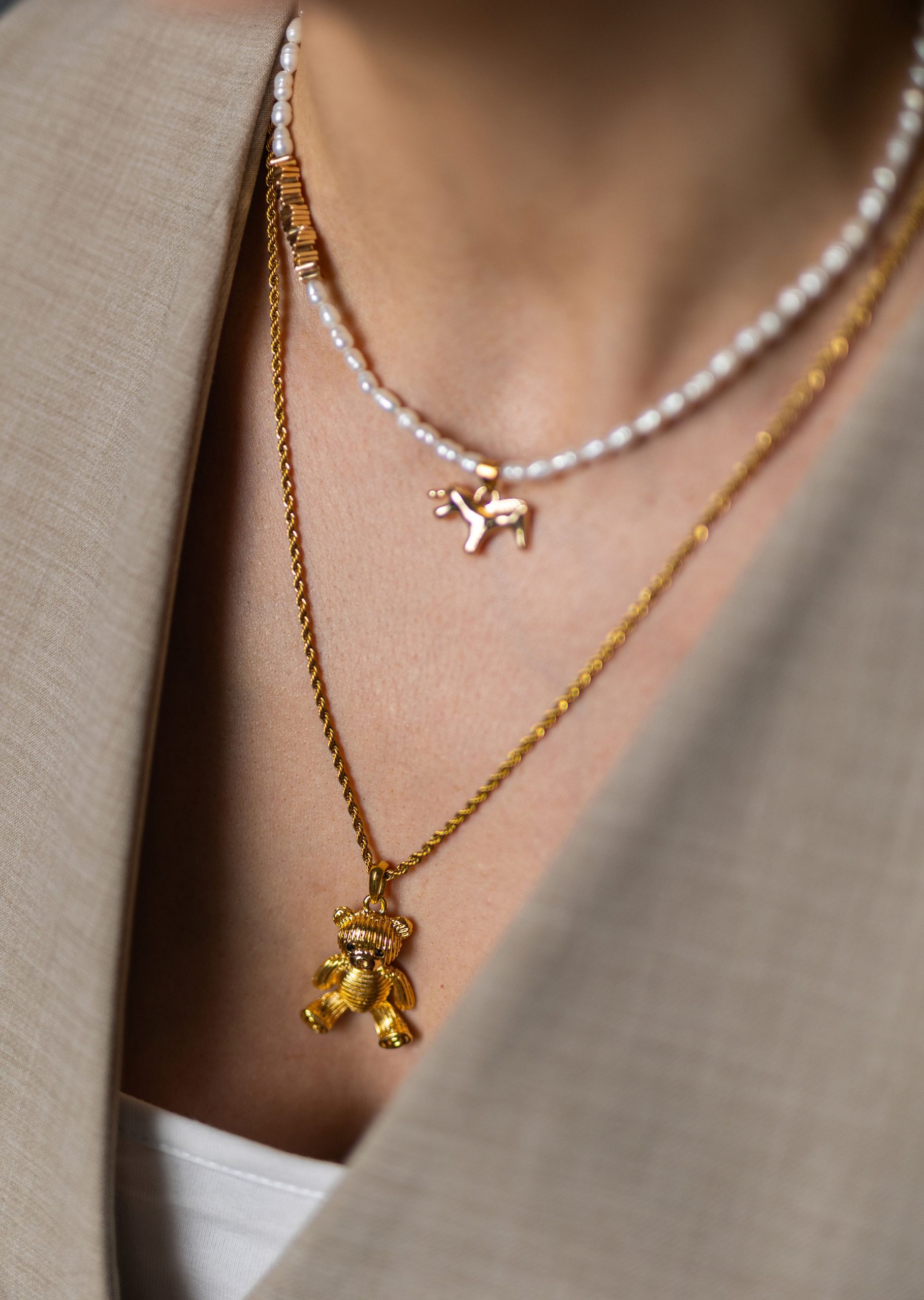 Grandinėlės ilgis su meškiuku – 59 cm.